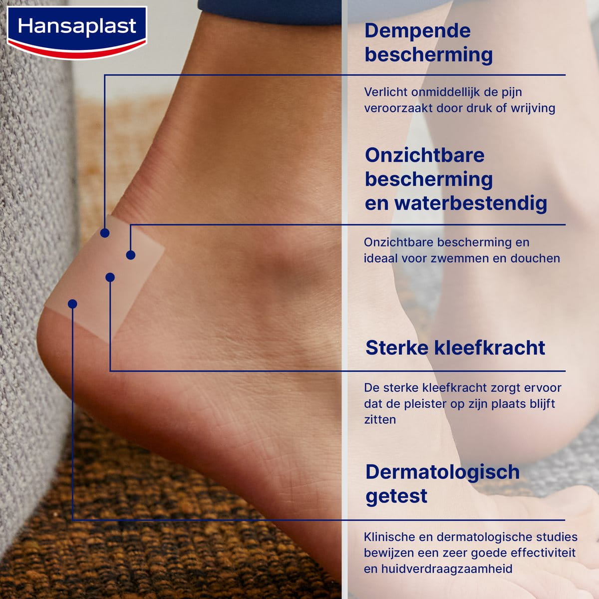 Hansaplast Anti-druk patches biedt onmiddellijke bescherming tegen pijnlijke druk en wrijving op elk deel van de voet. Het is vrijwel onzichtbaar en daarom uitstekend geschikt voor zomerschoenen met bandjes. Deze kan in elk gewenst formaat en elke gewenste vorm worden geknipt