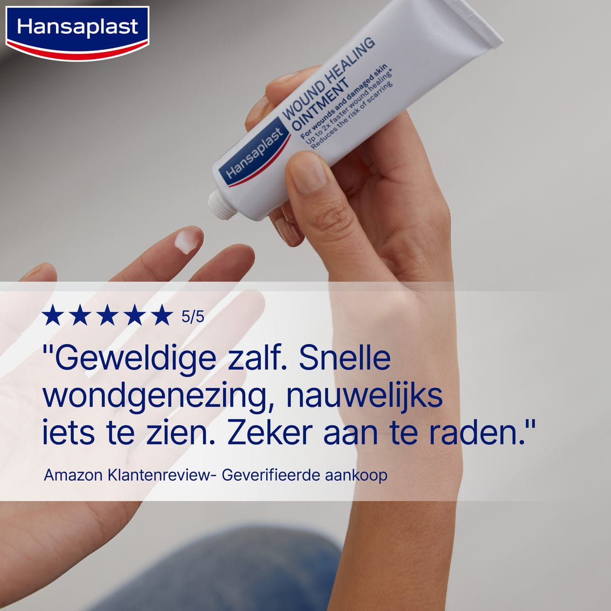 Een zalf ter ondersteuning en bevordering van het natuurlijke genezingsproces van kleine oppervlakkige wonden zoals sneeën, schaafwonden en krassen als ook voor eerste en kleine tweedegraads brandwonden. Hansaplast Wondhelende Zalf kan gebruikt worden op elk moment van het genezingsproces op oppervlakkige open wonden en beschadigde huid. Het is klinisch bewezen dat een vochtige wondgenezing helpt om het natuurlijke wondgenezingsproces te versnellen. Hansaplast Wondhelende Zalf vormt een ademende laag welke de wond tegen externe invloeden beschermt en het uitdrogen van de wond voorkomt. Het is klinisch bewezen dat dit voor en snellere wondgenezing zorgt en het risico op littekenvorming vermindert. De Hansaplast Wondhelende Zalf is zeer huidvriendelijk. De zachte formule is dermatologisch getest * en is geschikt voor baby's, kinderen en de gevoelige huid. Hansaplast Wondhelende Zalf is vrij van kleur- en geurstoffen. De Panthenol bevattende formule werkt als een beschermende barrière om het vochtgehalte van de huid te behouden en creëert een ideale omgeving voor het huidherstel. De zalf kan worden gecombineerd met standaard pleisters van Hansaplast, zoals Classic, Elastic, Sensitive en Universal, evenals kinderpleisters. * Huidverdraagzaamheid dermatologisch getest.